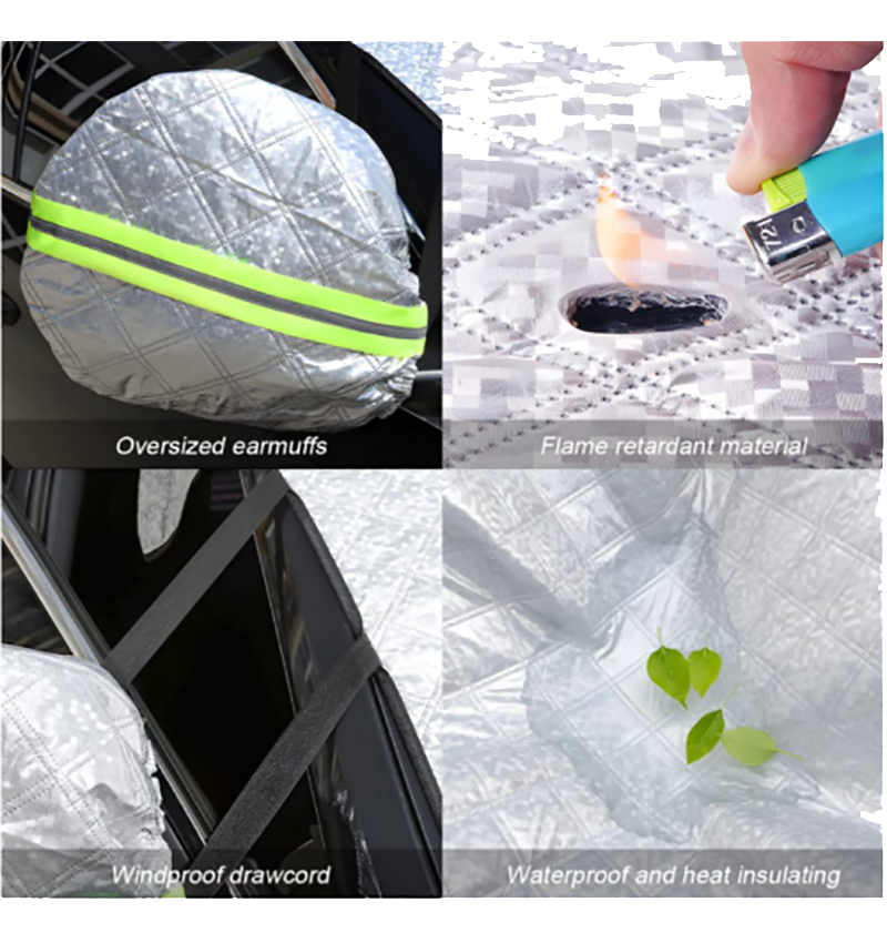 挡风玻璃防雪罩采用高密度材料制成,超厚耐用,防水防晒,阻燃。