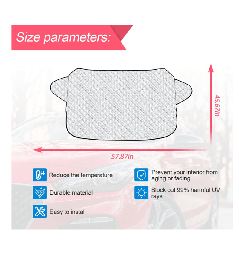 【夏季和冬季保护】:夏季 - 阻挡近 99% 的紫外线,有助于在炎热和阳光明媚的天气里降低温度。冬季 - 耐-50°C低温。它可以防止冬季挡风玻璃上结霜/雪/冰,并减少早晨刮除冰雪的时间。